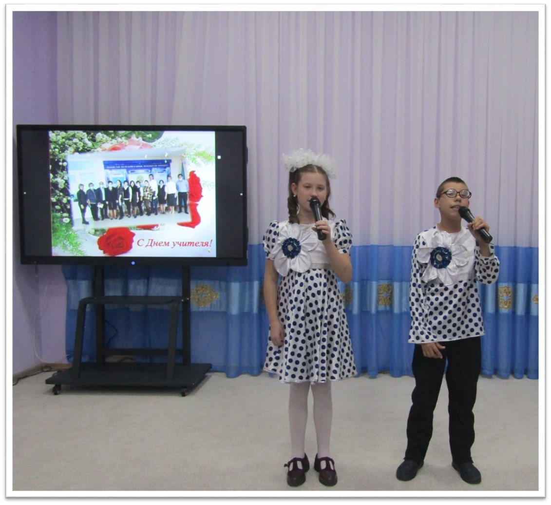 В этот особенный день зал был наполнен теми, кто трудится на благо будущего поколения и сам всегда стремится к новым знаниям. Воспитанники подарили свои самые теплые и яркие номера и поздравили педагогов с наступающим профессиональным праздником. Учащиеся школы подготовили музыкальные номера: трио с песней «Ұстазым», флешмоб, дуэт с песней «Вместе будем на планете», вокальный ансамбль с песней «Мой добрый учитель», домбровое пение. Также ребята школы подготовили стихотворения для своих наставников, учителей и воспитателей школы.